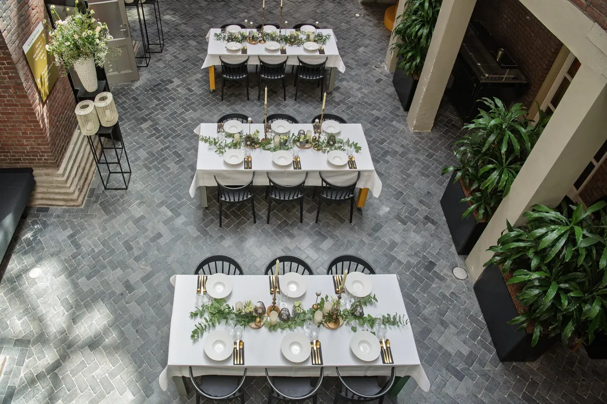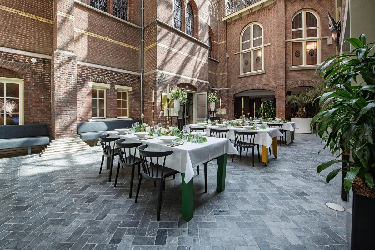 Omringd door groen en historische gevels is de Binnentuin een idyllische plek voor diners, trouwerijen, ceremonies en feesten in de buitenlucht.